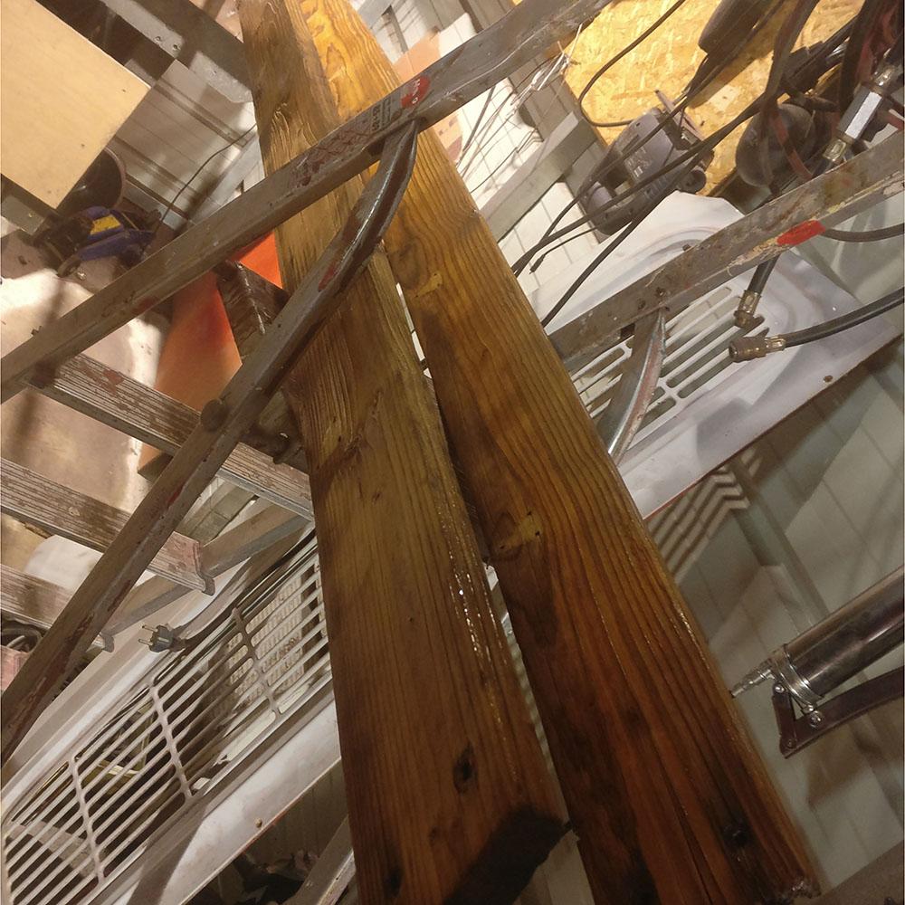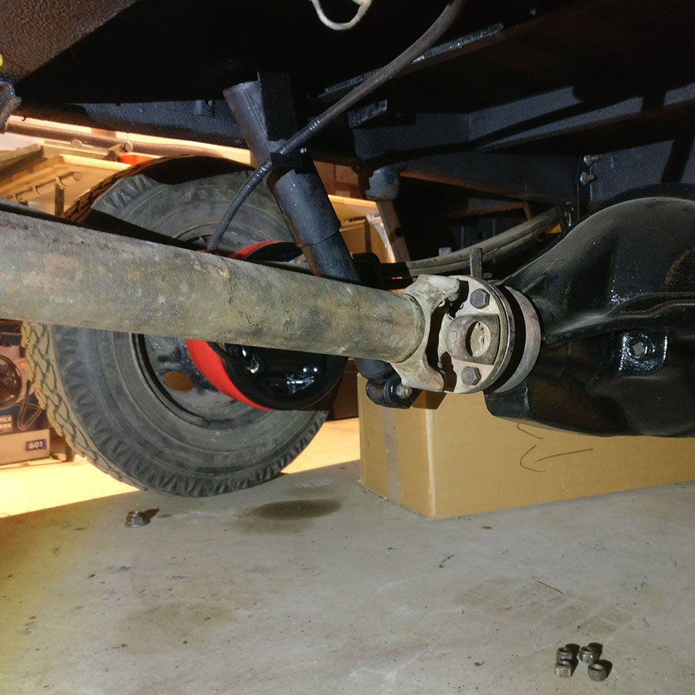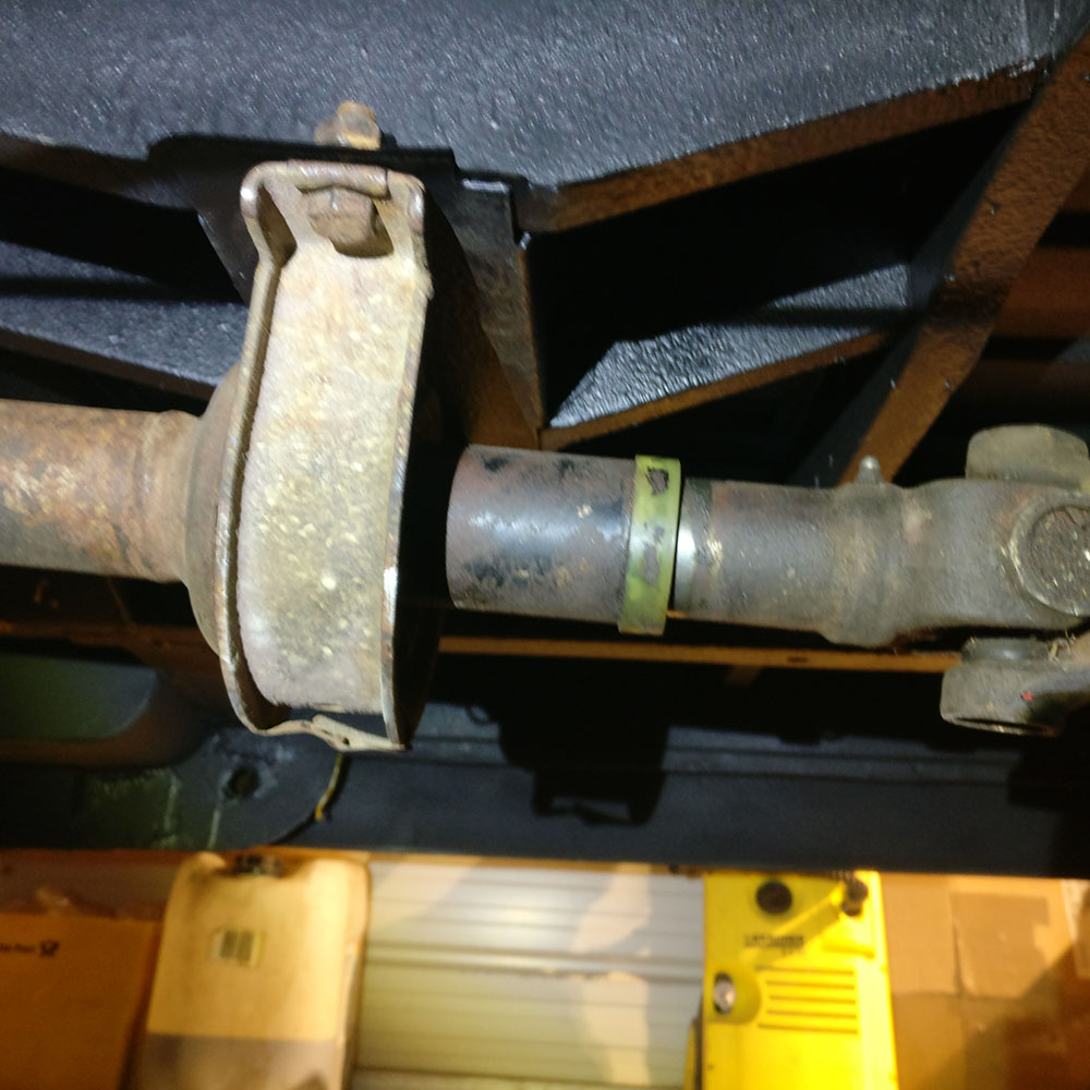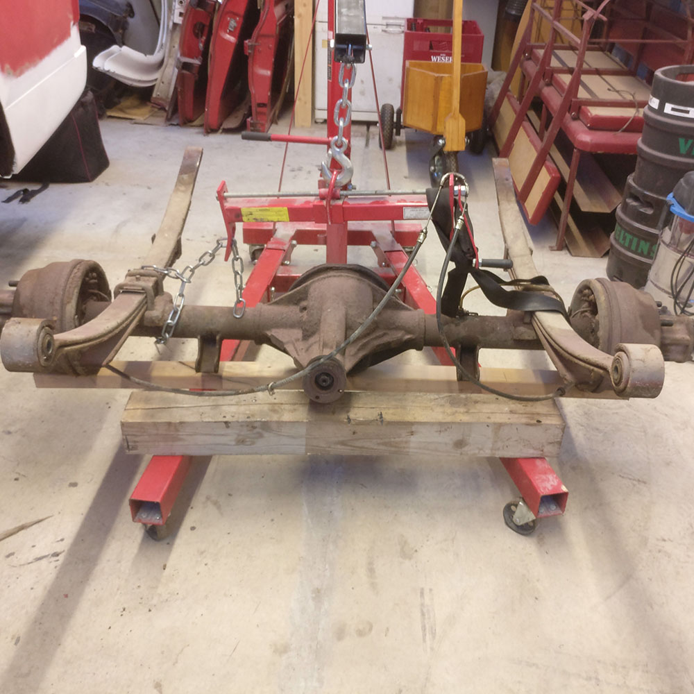Nachdem das WoMo beim Entsorgen vom Stapler fällt und uns fast erschlägt, machen wir uns an das Entrosten und Lackieren der Achsen.