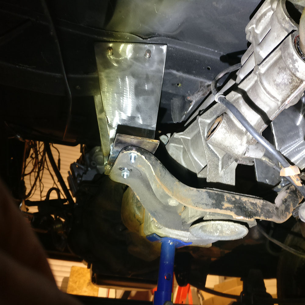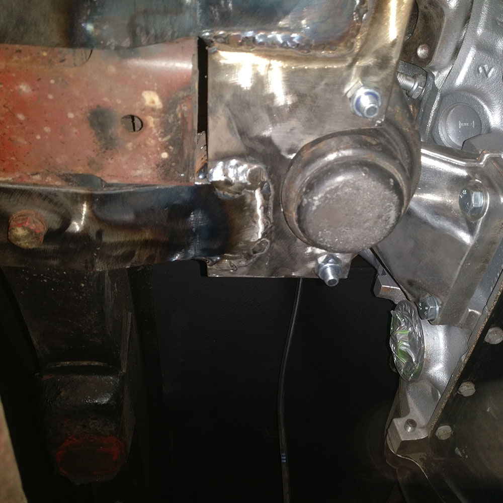 Für das Getriebe muss ein neuer Halter links und rechts konstruiert werden. Direkt über der Getriebebrücke ist ein Träger, Glück gehabt!