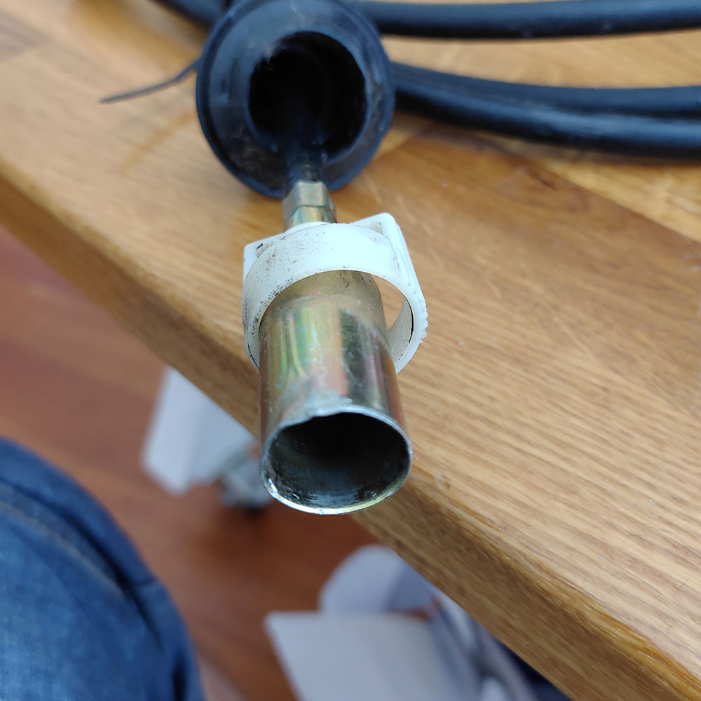Der Tacho zeigt jetzt die falsche Geschwindigkeit an, wir machen also eine Messfahrt mit Garmin und iPhone und ermitteln den Faktor 1,37 mal zu wenig zwischen angezeigter und gemessener Geschwindigkeit. Im Internet finde ich ein VDO-Angleichungsgetriebe für Tachowellen aus den 70ern und nach langem Suchen einen Handwerksbetrieb im Osten, der mir die Tachowelle teilt und mit den richtigen Anschlüssen umbaut.