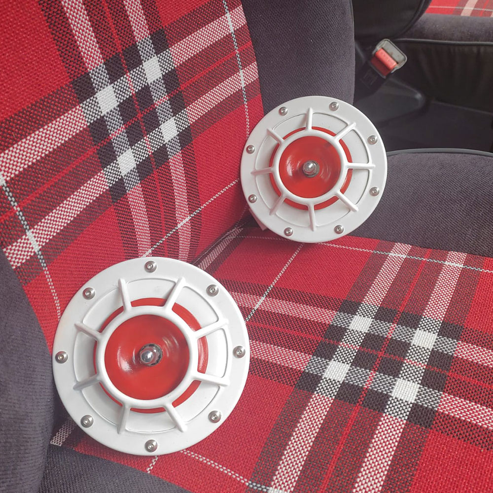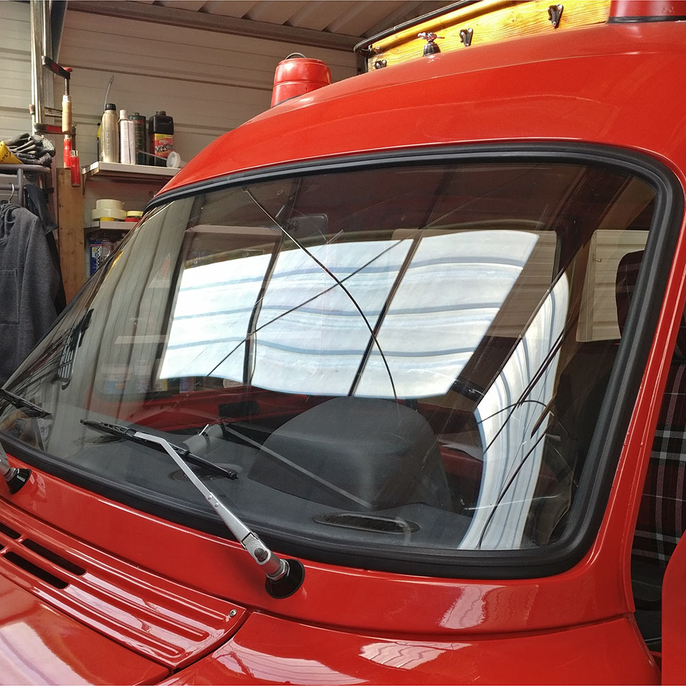 Die alten Kunstledersitze passen nun überhaupt nicht mehr. Wir entscheiden uns dazu, die Sitze aus dem Wohnmobil zu restaurieren und Dörte schneidert neue Bezüge im GTI Stil der 70er.