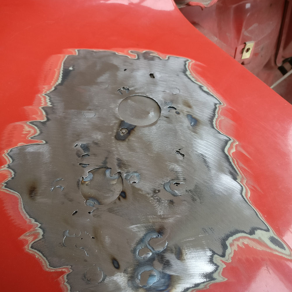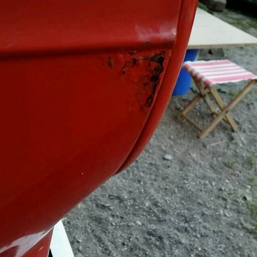 Teilweise wurden die reparierten Stellen verzinnt, oder wo nicht möglich mit Kaltzinn gespachtelt und mit 2K-Rostschutz grundiert.