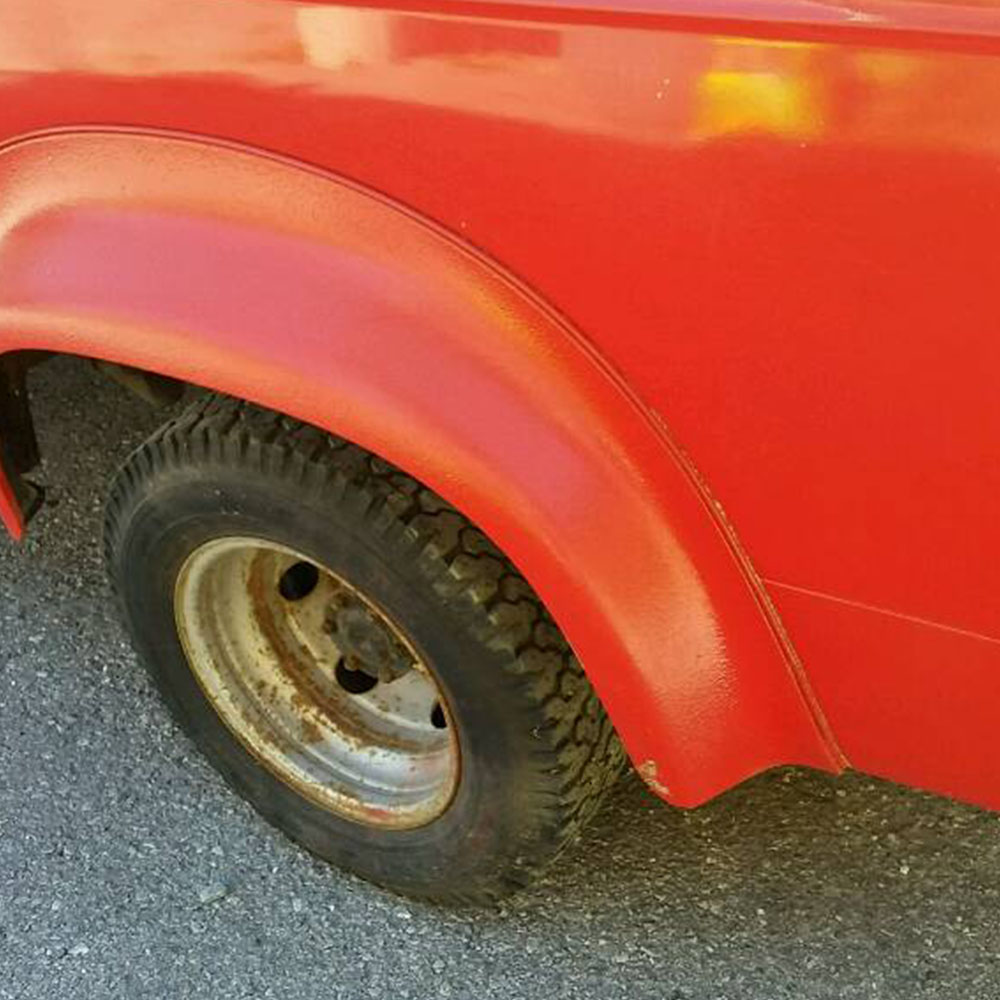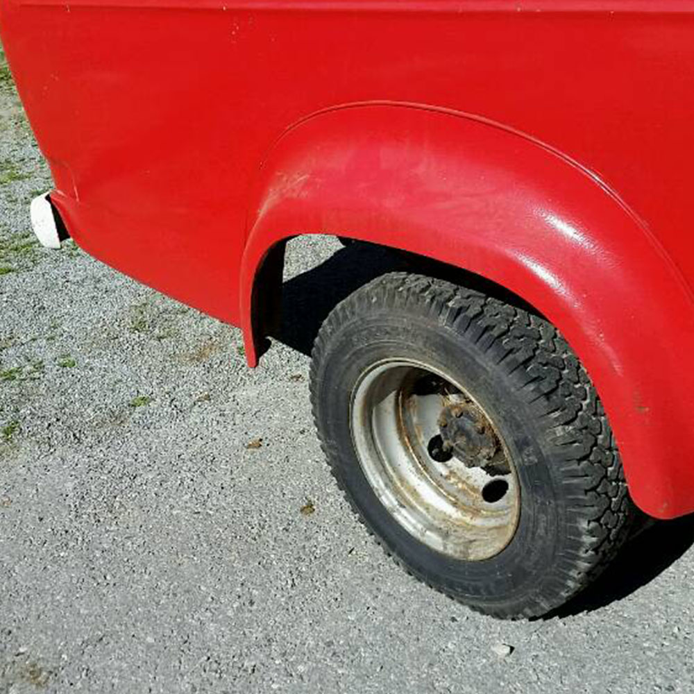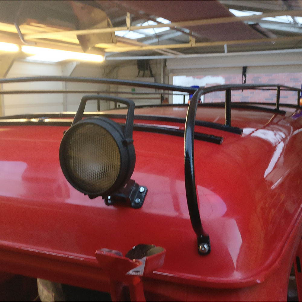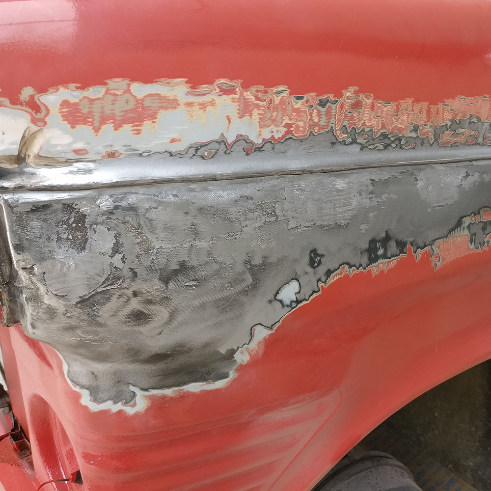 Die Felgen, Stoßstangen, die Leiter und das Kühlerblech wurden chemisch entlackt und pulverbeschichtet (verkehrsweiß).