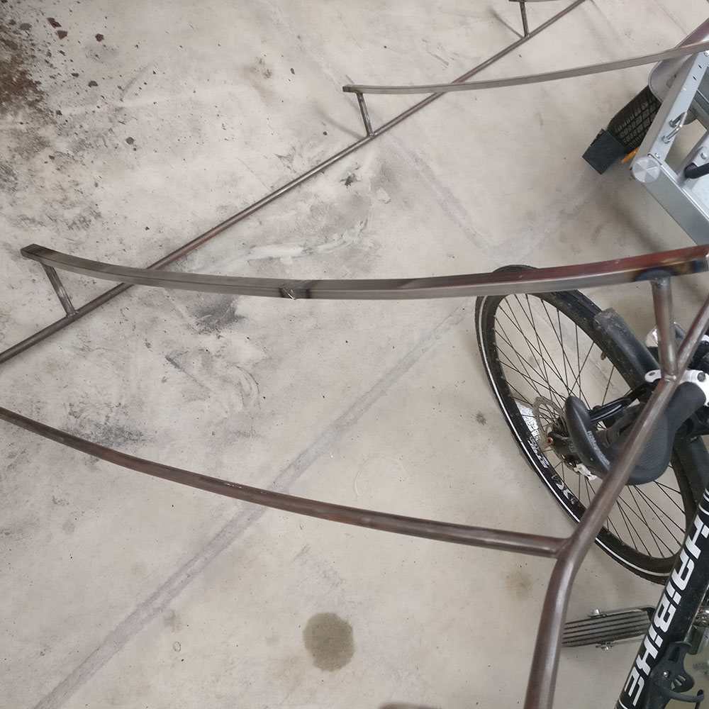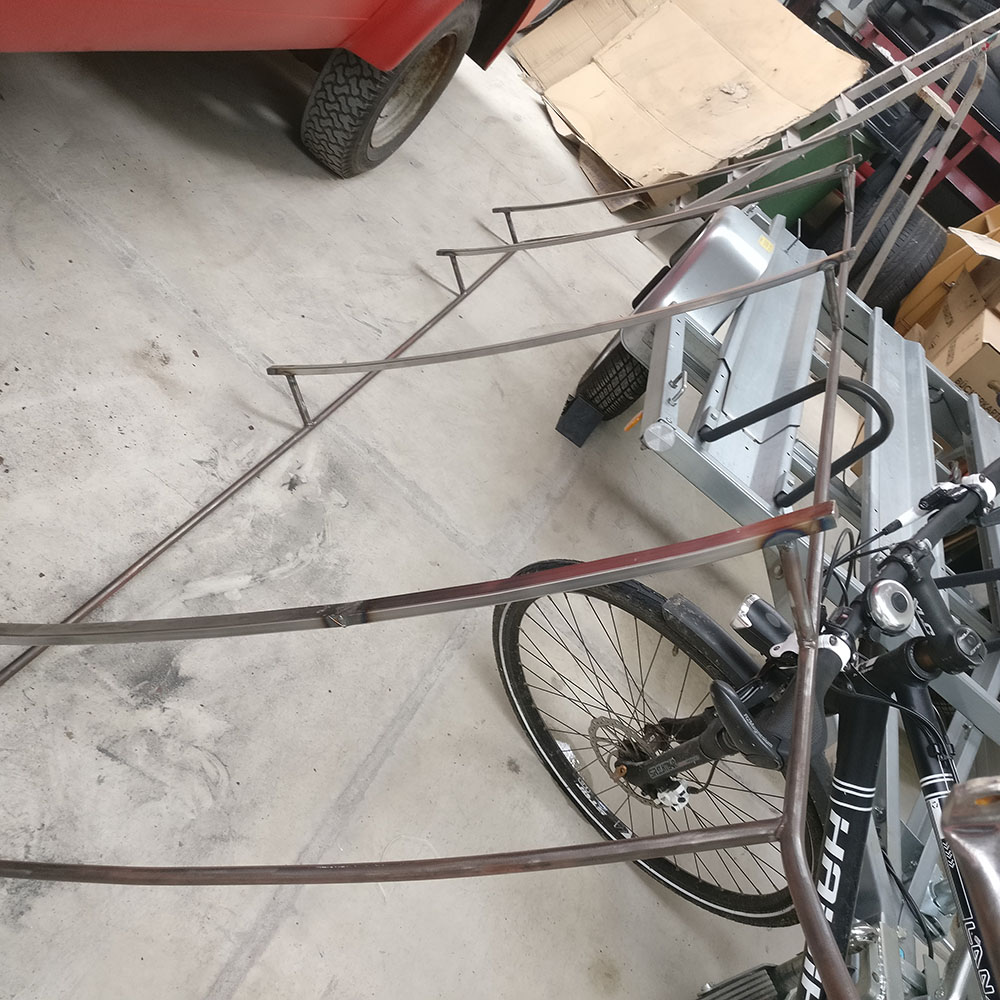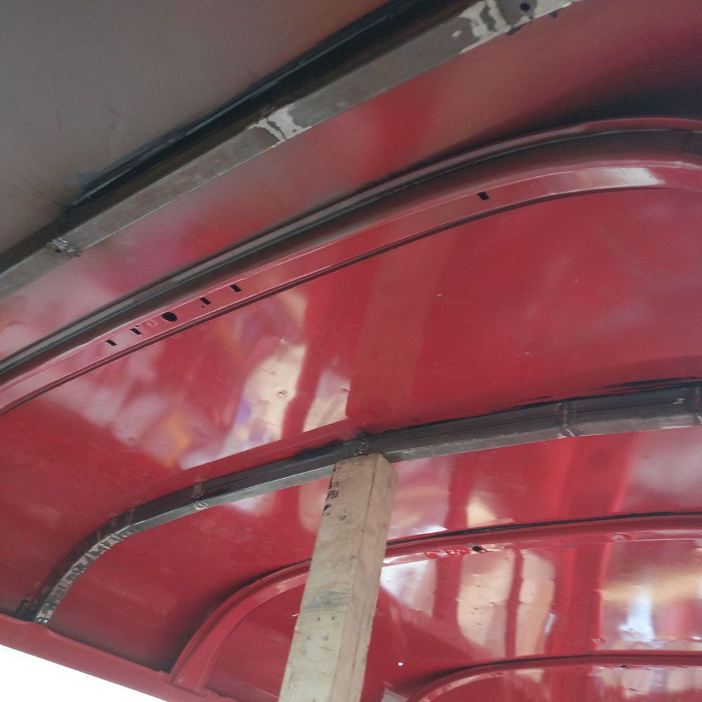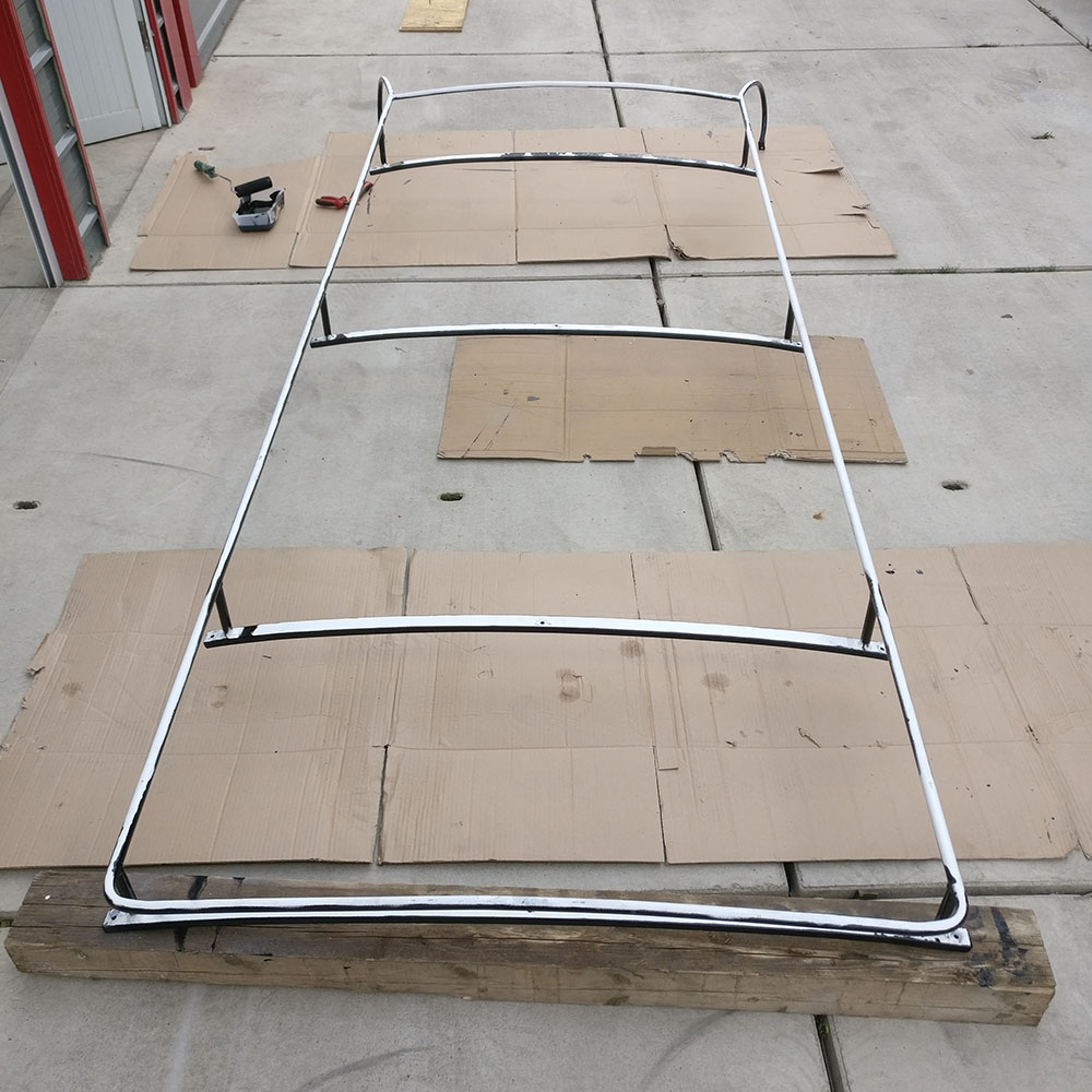 Das Dach war durch Begehung auf dem Dachträger eingedrückt. Wir haben es ausgebeult und 5 massive „Überollbügel“ eingescheißt.