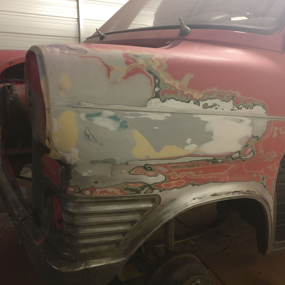 Am Ende haben wir dann wo nötig gespachtelt und mit 1200er Körnung durchgeschliffen, bevor das Auto in die Lackiererei gekommen ist.