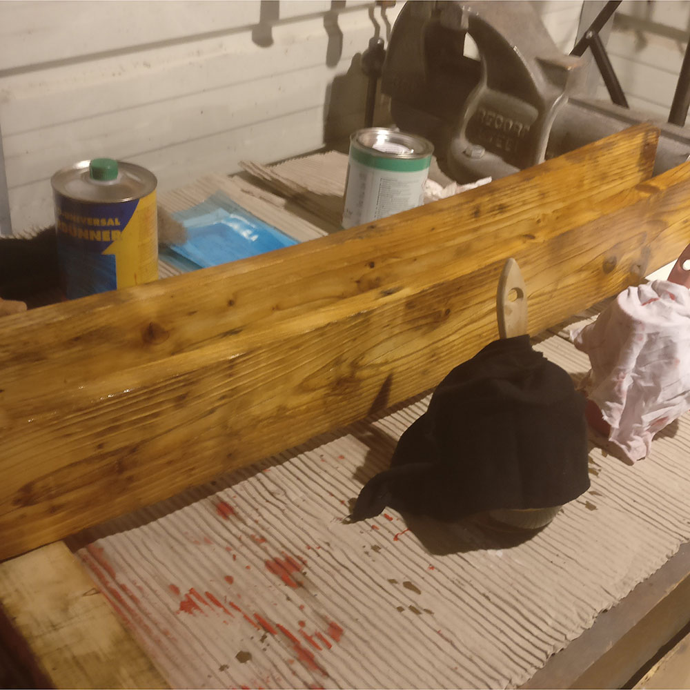 In dieser Zeit habe ich offene Metallflächen mit Brantho-Korrux ablackiert, um die restaurierten und reparierten Stellen vor neuer Korrosion zu schützen.