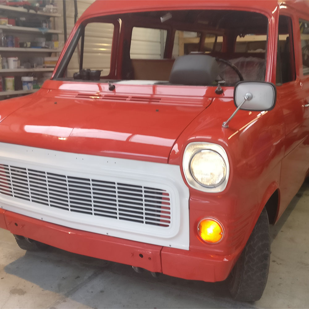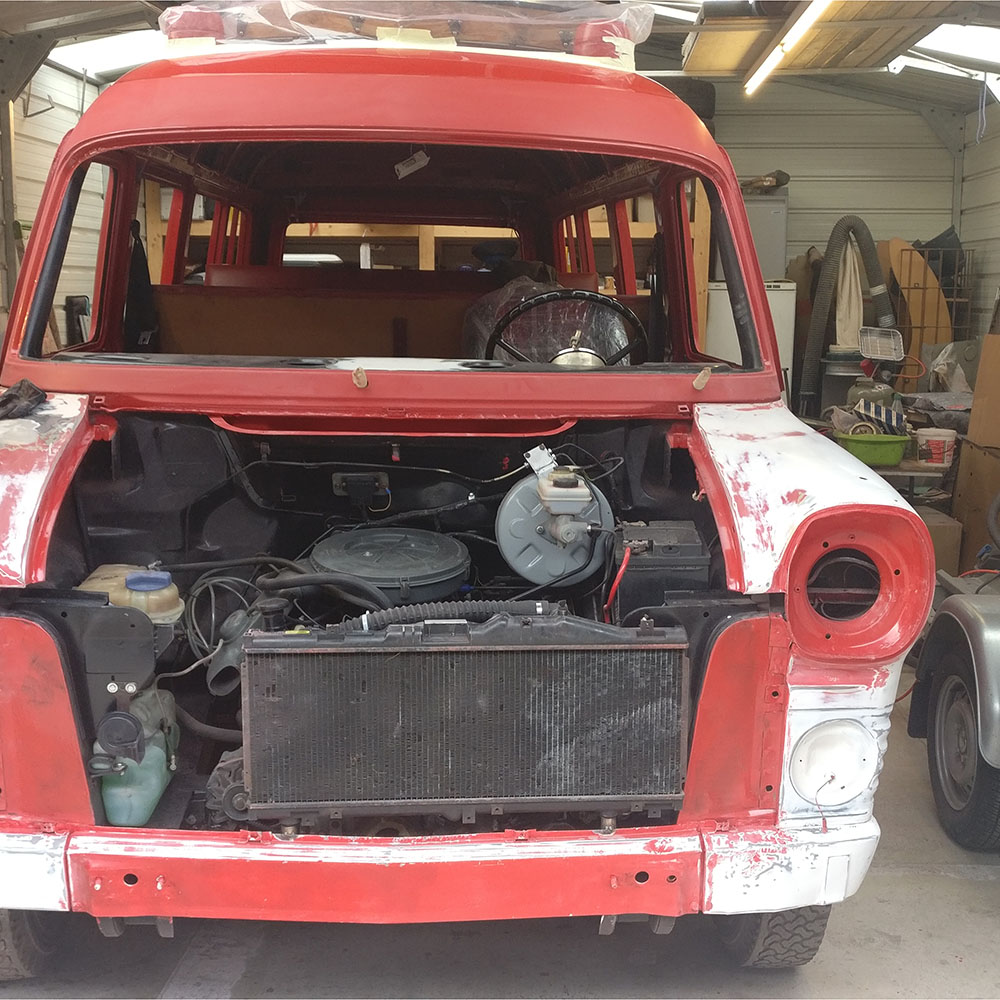 Es gibt Leute, die sind der Meinung, ein 2,3l Ford V6 passt nicht in den Motorraum eines Transit MK1 ohne eine Dieselschnauze oder Anpassungen im Fahrgastraum.