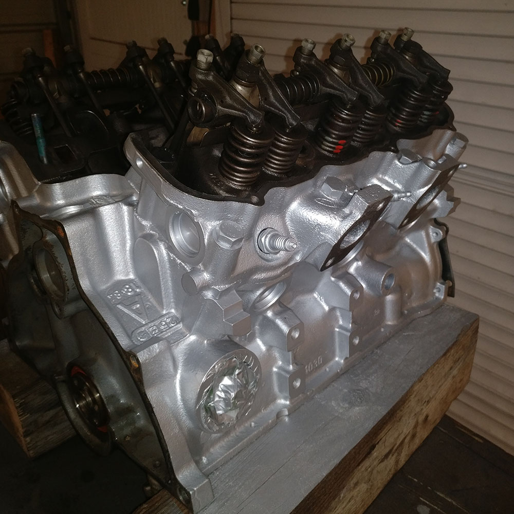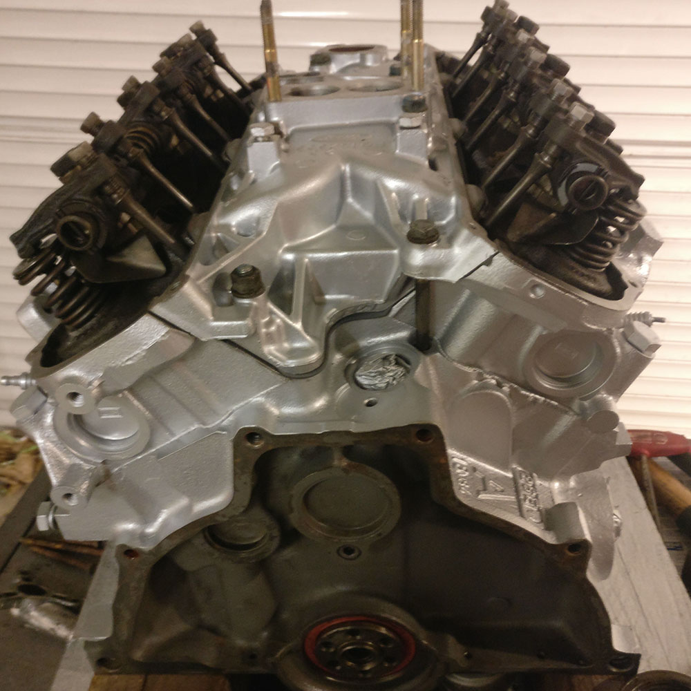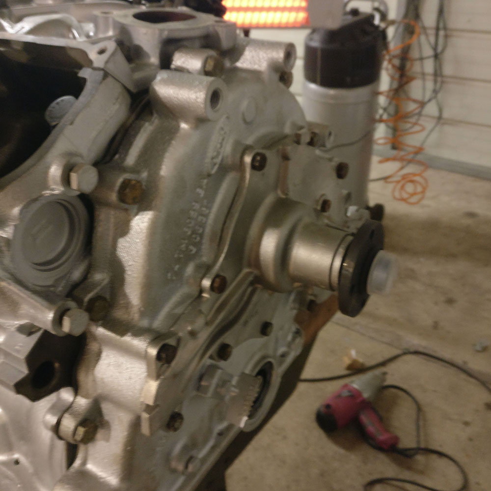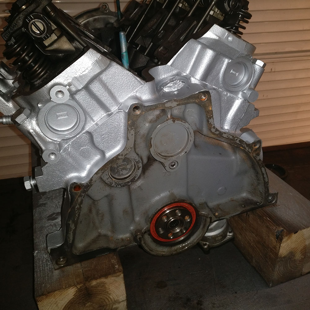 Alle Aggregate werden abgebaut, also Vergaser, LiMa, Verteiler (schon elektronisch), Krümmer, Sensoren, Kühlflansche, Kraftstoffpumpe, Wasserpumpe, Stirnräder Anlasser, wenn die nicht schon beim Ausbau aus dem Sierra abgenommen wurden.