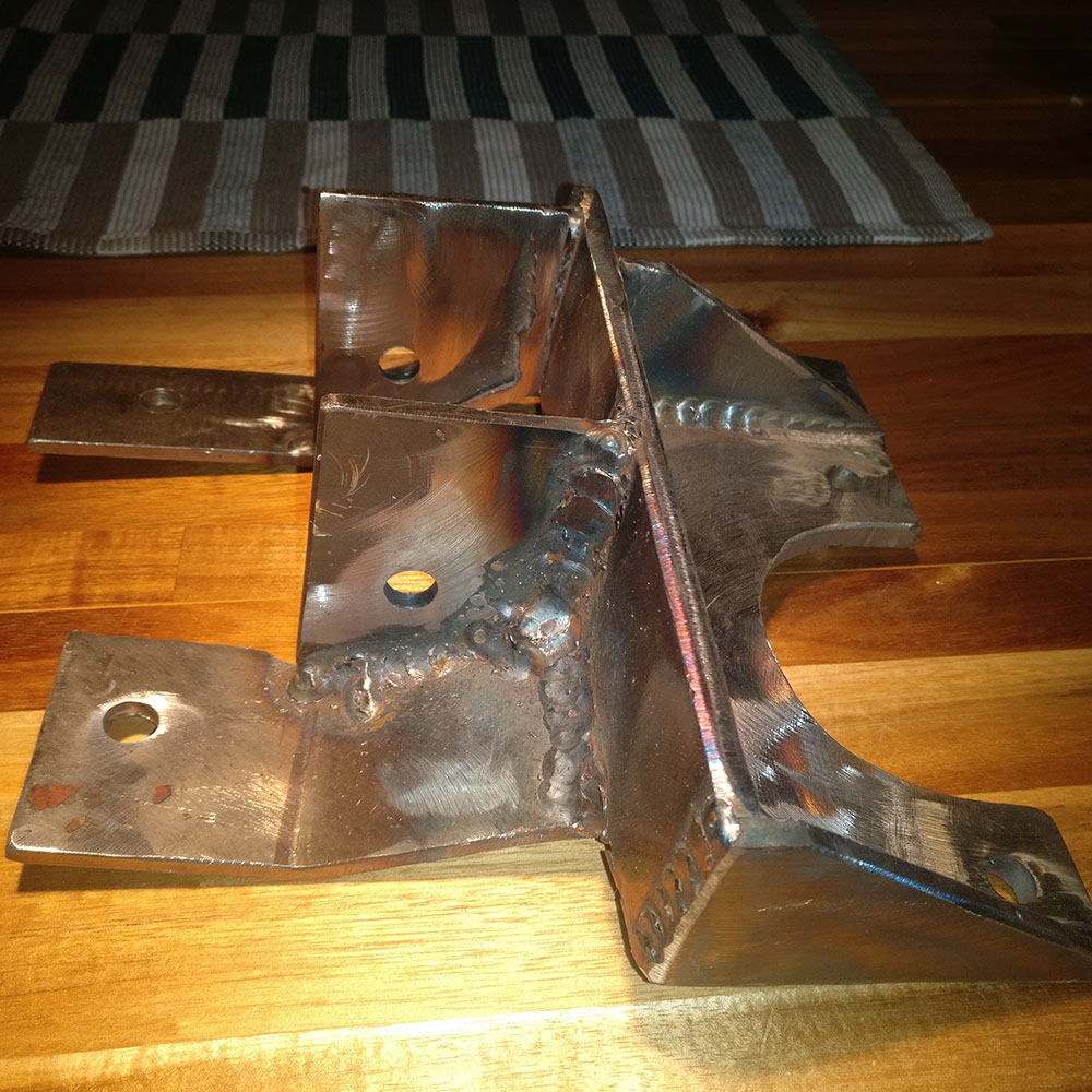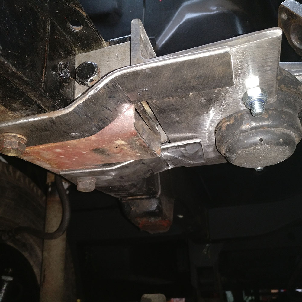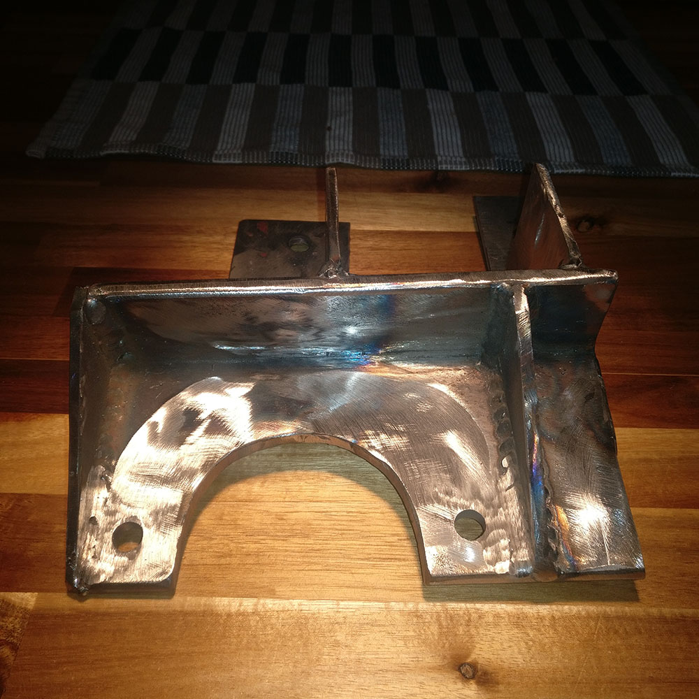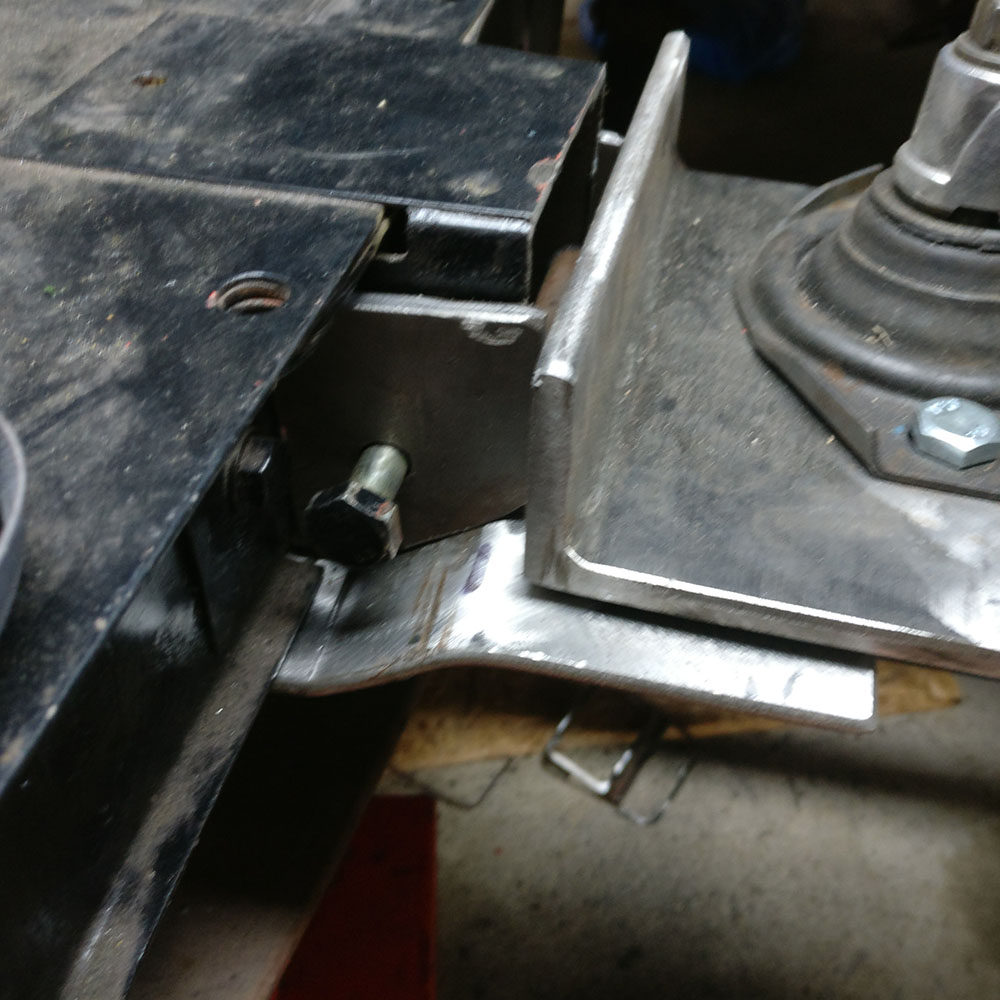Nach dem Verschrauben der Motorhalter werden die Getriebehalter gefertigt und die Antriebswelle gekürzt (siehe Kapitel Antrieb & Bremsen).