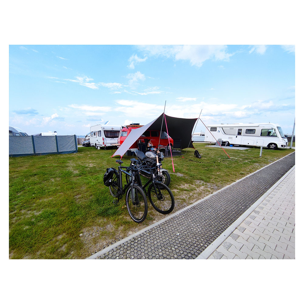 Aktuell sind auf dem Dach zwei Solarpanels verbaut, wodurch ein autarker Betrieb von Kompressorkühlbox und das Laden von Handys, Computern und Bluetoothbox möglich ist. Trotzdem ist noch ausreichen Platz für z.B. eine Dachbox oder Fahrräder.